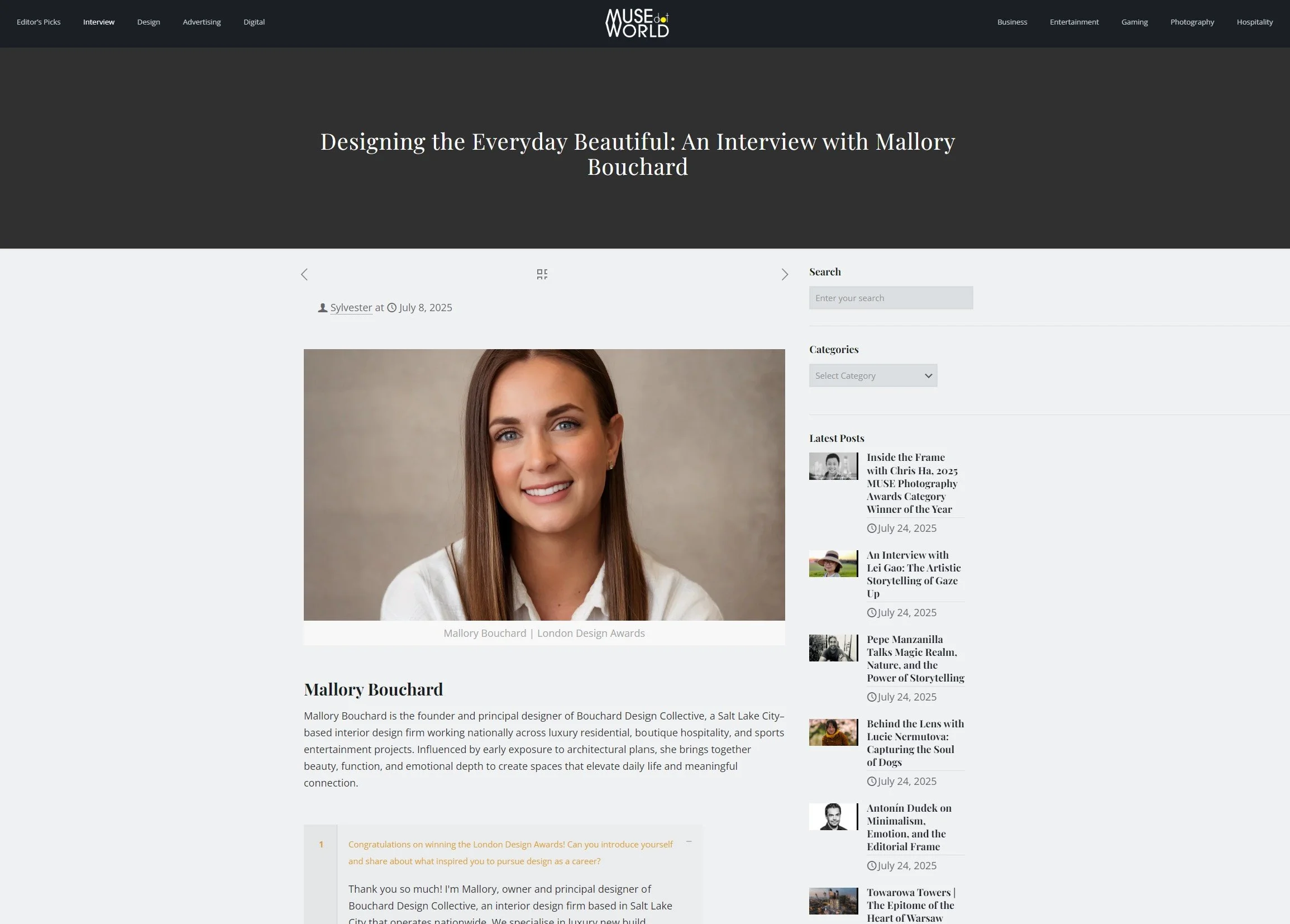 Muse International- Designing The Everyday Beautiful an Interview with Designer Mallory Bouchard
